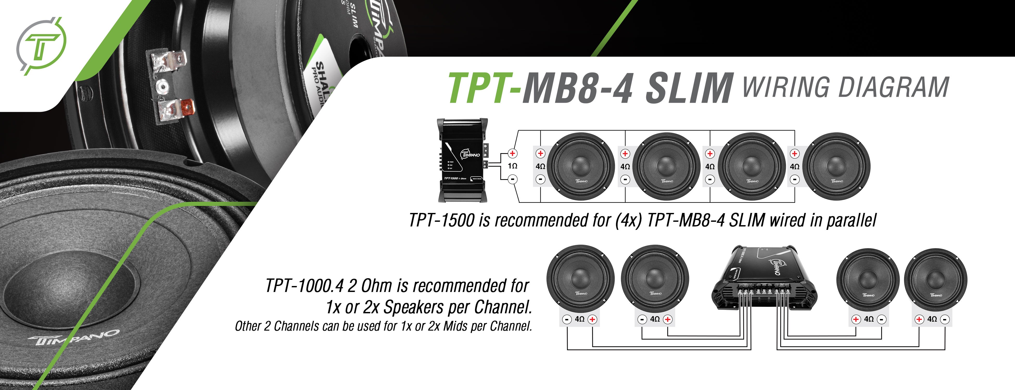 There are a variety of sizes and impedance versions available in the Timpano Slim Series. These include the 8 Ohm version of this model TPT-MB8-8 SLIM and the 6.5″ size of this model TPT-MB6-4 Slim.