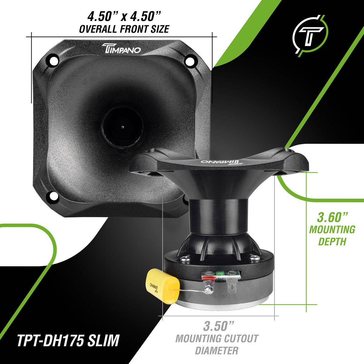 Timpano Horn Driver TPT-DH175 SLIM, Car Audio 250 Watts 8 Ohm 1″ Exit High Frequency Compression Driver Shallow Design